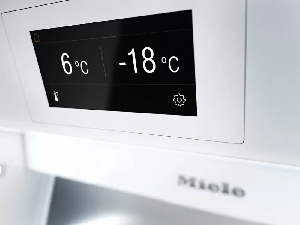 Холодильно-морозильная комбинация MasterCool Miele KF2901Vi — встроенная модель с жестким креплением фасада объемом 505 литров. Сенсорный дисплей MasterSensor служит для регулировки температуры. DuplexCool предусматривает раздельные потоки холодного воздуха без смешивания запахов. Полки из ударопрочного стекла имеют защиту от проливания. Технология MasterFresh втрое увеличивает срок хранения свежих продуктов. Динамическое охлаждение DynaCool позволяет хранить продукты в любом отсеке.