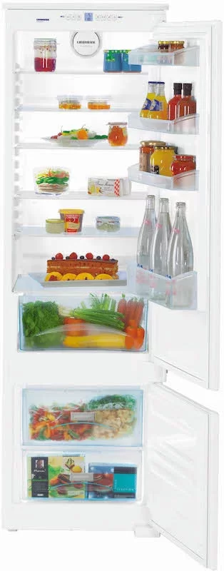 Холодильник Liebherr ICS 3204 Comfort располагает двумя камерами. Классическая конфигурация — минусовая камера снизу. Она оснащена двумя вместиетльными ящиками из прочного пластика. Боксы легко выдвигаются — для этого не нужно прилагать много усилий. Прозрачный фронт — это дополнительное удобство при просмотре содержимого. Верхнее отделение — это разнообразие полочек для комфортного расположения продуктов, упаковок и бутылок. В большом ящике удобно расположить овощи или фрукты. Электронное управление отличается простотой настройки. На дисплее демонстрируется температура, что позволяет контролировать работу прибора. Холодильник Либхер ICS 3204 предупреждает пользователя о неисправностях, а также отключении электроэнергии. Внутри предусмотрена светодиодная подсветка, которая обеспечивает комфортный обзор.