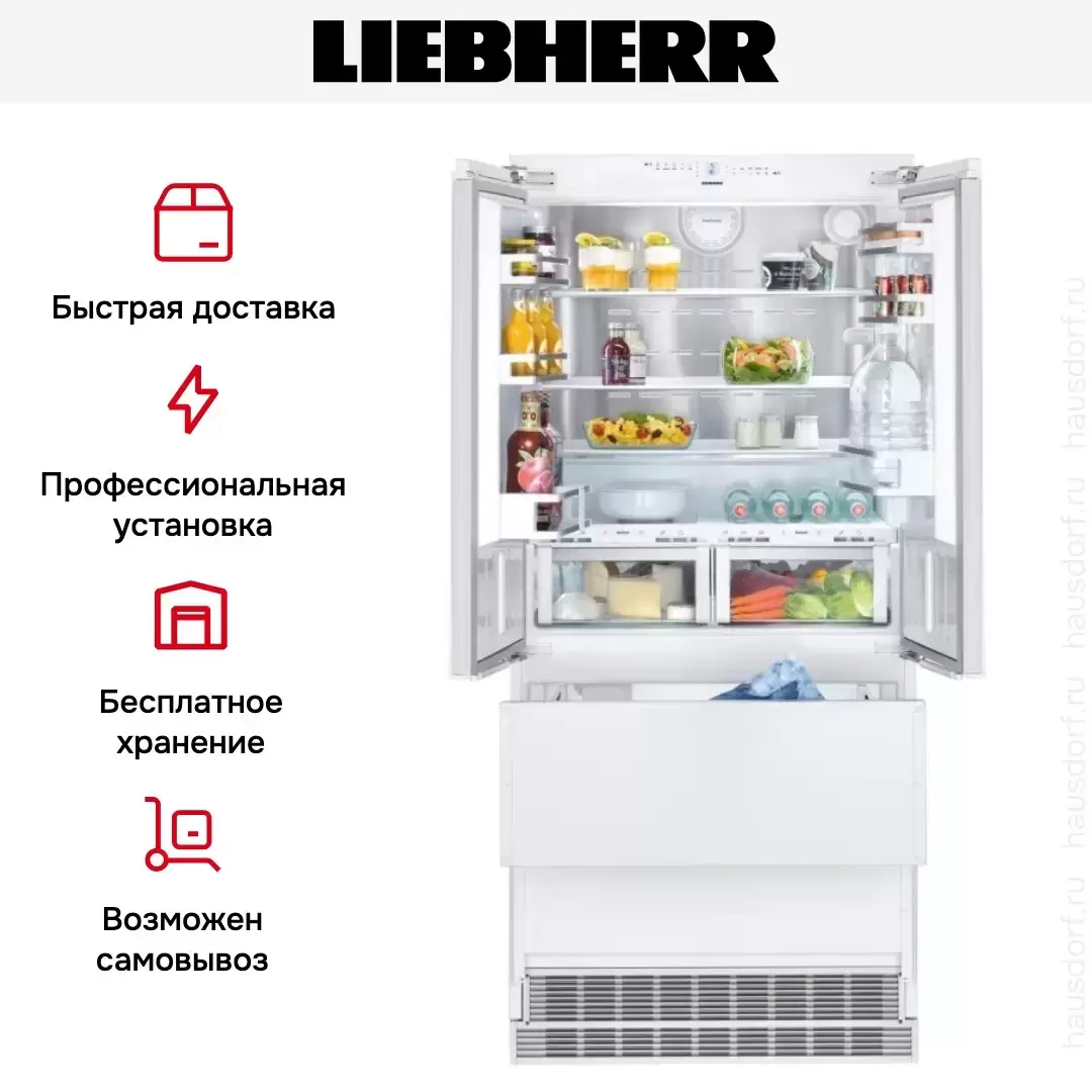 Встраиваемый холодильник Liebherr French Door ECBN 6256 Premium Plus — новый эталон стиля, вместительности и комфорта в использовании. Большой объем прибора позволит с легкостью разместить все необходимые продукты. Все ящики и контейнеры ECBN 6256 оборудованы телескопическими направляющими, обеспечивающими легкое открывание даже сильно загруженного отделения. Современный фирменный стиль liebherr выдержан в этом холодильнике до мелочей: интерьер дверей и полки серии GlassLine с алюминиевым обрамлением, светодиодная подсветка всех отсеков.