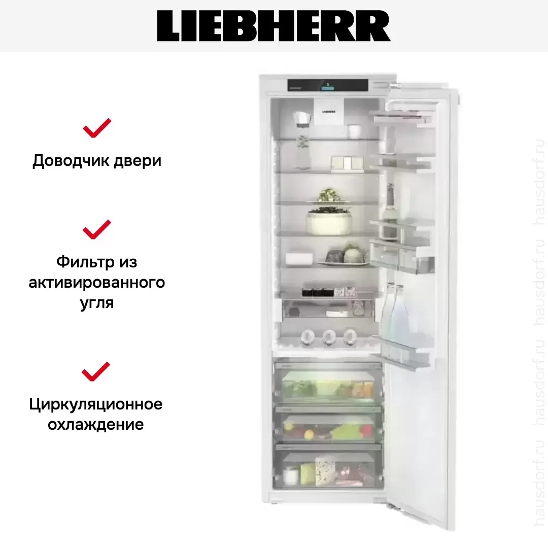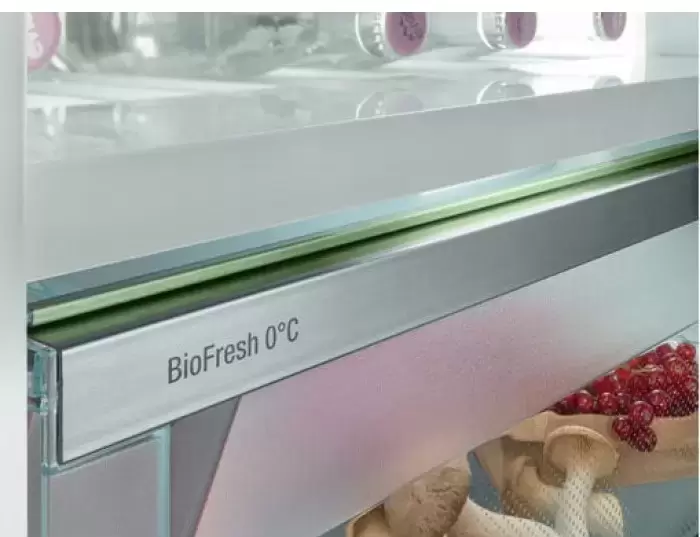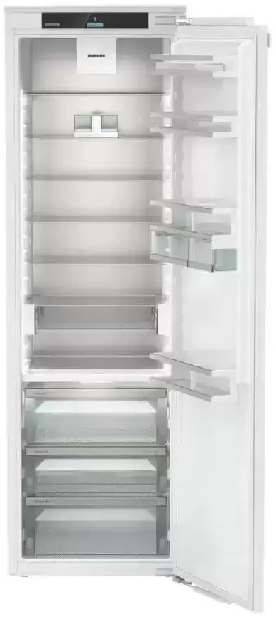 Встраиваемый холодильник Liebherr IRBd 5150 Prime общим объемом 321 л оснащен тремя контейнерами BioFresh, в которых сохраняется повышенная влажность и даже наиболее чувствительные продукты остаются свежими дольше, чем обычно. Освещение LightTower расположено так, чтобы пространство в камере было оптимально освещено. Благодаря регулируемым полкам хранить объемную посуду не составит труда. Можно не переживать за сохранность бутылок в отделении двери, полки оснащены специальным держателем.