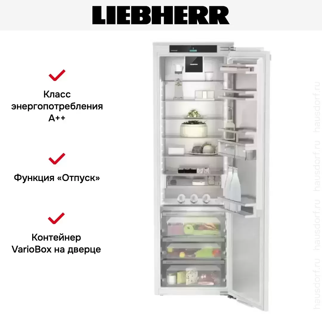 Встраиваемый холодильник Liebherr IRBd 5180 Peak станет отличным помощником на вашей кухне. Данная модель оснащена режимами, которые значительно помогут сэкономить ваше время. Сенсорный и свайповый экран интуитивно понятен в управлении, режимы и температура выбираются одним касанием.
