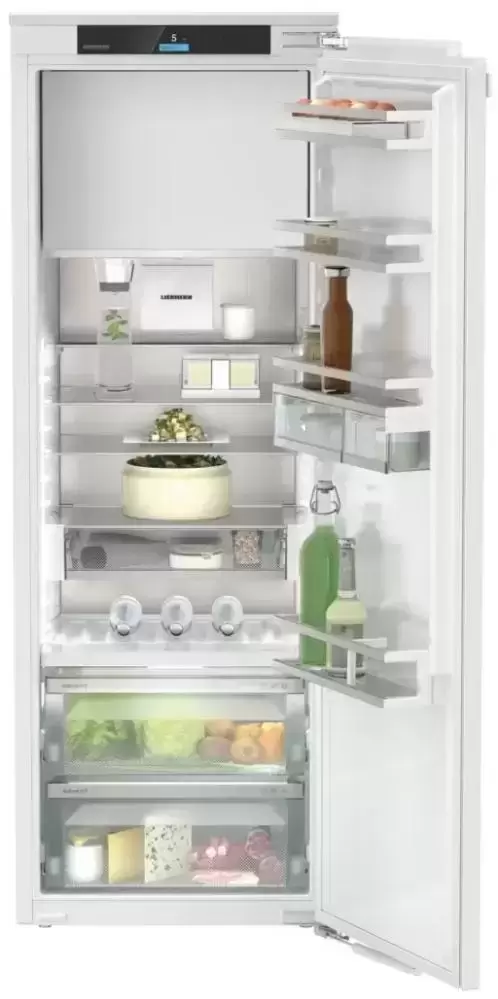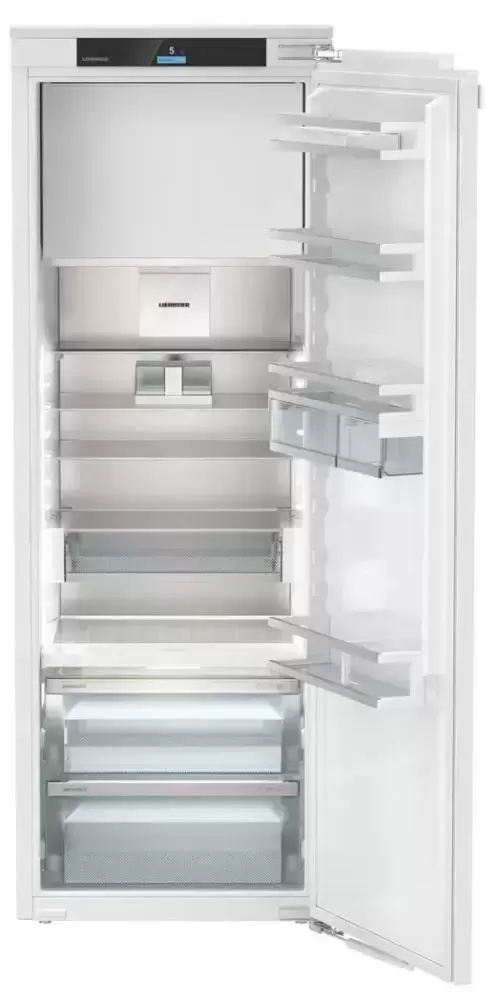 Встраиваемый холодильник Liebherr IRBe 4851 Prime с верхним расположением морозильного отделения вместителен и удобен в использовании. Благодаря возможности перевесить дверцу справа налево трудностей с его установкой не возникнет. На современном электронном дисплее отображаются доступные режимы и температура.