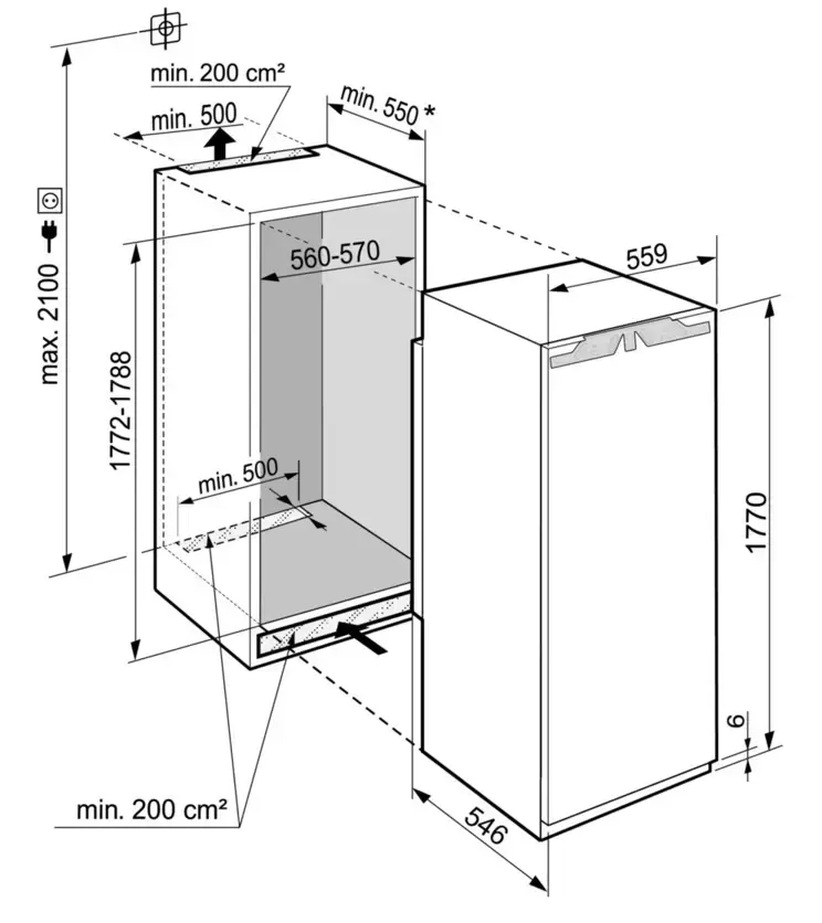 Встраиваемый холодильник Liebherr IRDe 5120 Plus с сенсорным управлением и цифровой индикацией температуры общим объемом 320 л вместит любые продукты, а регулируемые полки по высоте позволят ставить посуду большого объема и даже поместить противень.