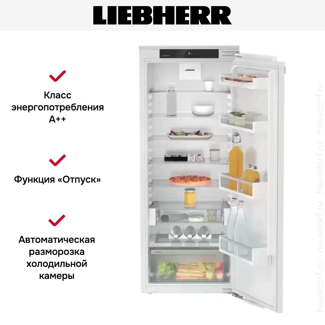 Встраиваемый холодильник Liebherr IRe 4520 Plus порадует вас своей вместительностью. Управление осуществляется с помощью сенсорного экрана, на котором отображаются все функции, разобраться не составит труда.