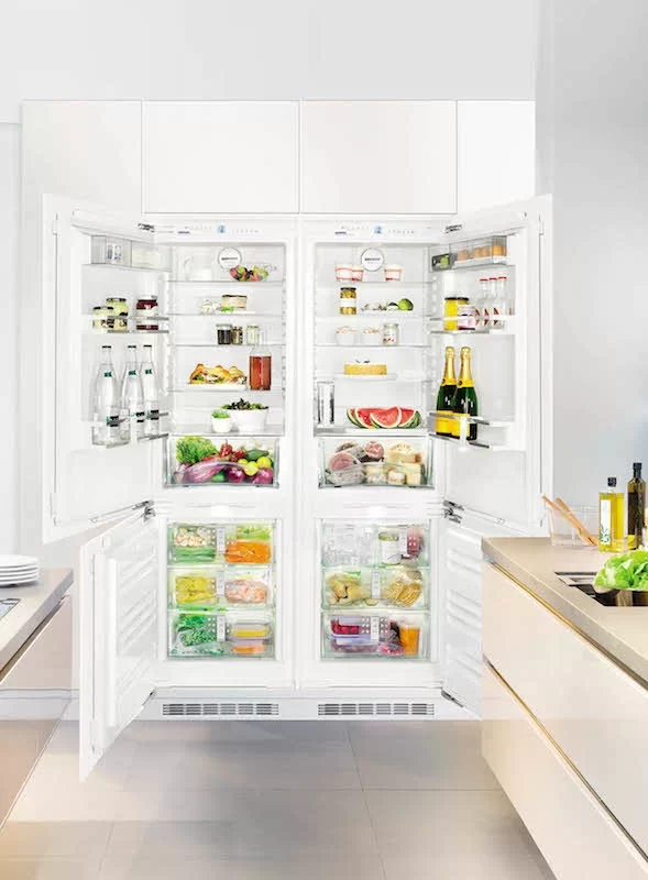 В холодильном отделении находятся регулируемые по высоте полки GlassLine из ударопрочного стекла с полосой из нержавеющей стали, отделение для бутылок, а также съемные контейнеры с крышкой VarioBox. В морозильной камере имеются выдвижные плотно закрывающиеся контейнеры FrostSafe со специальными роликами и прозрачным фронтом. Зона свежести BioCool позволяет регулировать уровень влажности для увеличения срока хранения овощей и фруктов.