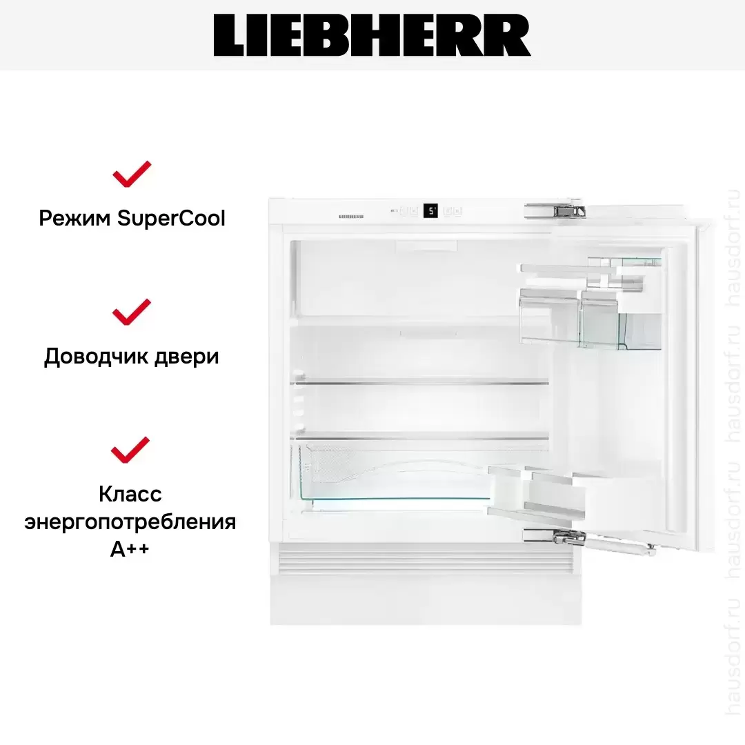 Liebherr UIKP 1554 Premium — встраиваемый под столешницу холодильник с 4-х звездочной морозильной камерой. Модель снабжена кнопочной панелью управления с ЖК-дисплеем MagicEye, благодаря чему можно с легкостью отрегулировать рабочие параметры. Автоматический режим SuperCool позволяет максимально быстро охладить большой объем недавно загруженных продуктов.
