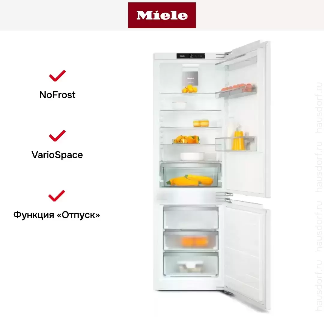 Встраиваемый холодильник Miele — это устройство, которое сочетает в себе стильный дизайн и функциональность. Морозильная камера расположена снизу, что обеспечивает удобство использования. Дверной упор справа обеспечивает удобство открывания, а доводчик двери позволяет избежать случайного открытия. Общий объем холодильника составляет 253 литра, из которых 183 литра занимает холодильная камера и 70 литров — морозильная. Устройство отличается климатическим классом SN-ST.