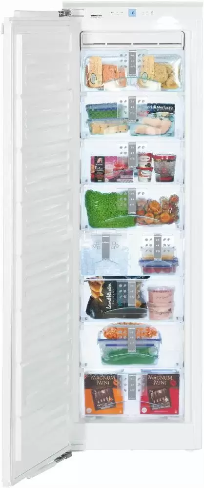 Морозилка Liebherr SIGN 3566 Premium NoFrost — вместительная модель, которая быстро замораживает и качественно сохраняет продукты. Для удобства предусмотрены прозрачные ящики, что позволяет просматривать содержимое без их выдвижения. Данный формат также предполагает расположение продуктов с правильным товарным соседством. Функция NoFrost не предполагает ручного размораживания, что значительно экономит время и силы на обслуживание модели. Внутри не образуется наледи и инея. Опция суперзамораживания — полезное дополнение к функциональному оснащению морозилки Либхер SIGN 3566 Premium. Она позволяет быстро заморозить продукты и автоматически отключается через определенный период времени. Сторону открывания двери можно изменить путем ее перенавешивания. Это удобно, если того требует конструкция помещения.