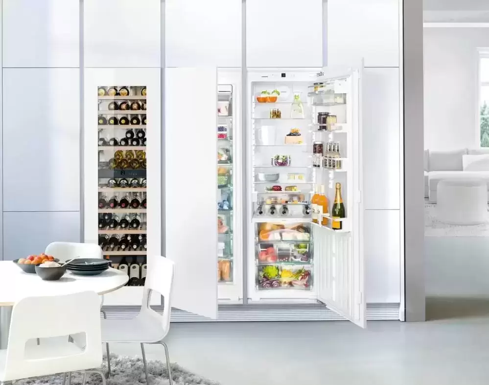 Устройство высотой 177 см и общим объемом 248 литров может встраиваться рядом с холодильником. Система размораживания NoFrost защищает стенки камеры от образования наледи, благодаря чему уход за устройством не составляет труда. Жесткое крепление декоративного фасада по системе door on door гарантирует прочность конструкции и широкий угол открытия дверцы до 115°. Как и прочие холодильники Liebherr, модель оснащена двумя выравнивающими планками для беспрепятственного закрывания дверцы. Амортизатор SoftSystem гарантирует плавный и тихий ход дверцы, даже если холодильник полностью загружен. Дверца будет закрываться самостоятельно при достижении угла открытия 30°. Внутри находятся герметично закрывающиеся прозрачные контейнеры FrostSafe для самого бережного хранения продуктов, отлично сохраняющие холод. Контейнеры легко выдвигаются, их можно извлечь, если требуется заморозка продуктов большого размера. Контейнеры и стеклянные полки без труда регулируются по высоте. Обогрев боковой стенки препятствует возникновению конденсата и защищает кухонную мебель. Автоматический режим SuperFrost поможет при загрузке большого количества продуктов.