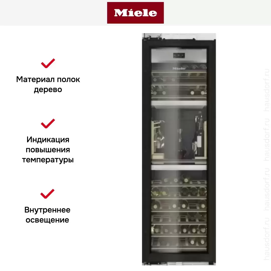 Встраиваемый винный холодильник Miele KWT2671VIS имеет три температурные зоны. Система динамического охлаждения DynaCool обеспечивает необходимый внутренний микроклимат, позволяющий продуктам питания дольше сохранять свою свежесть. Механизм открывания дверей Push2Open открывает двери самостоятельно без вашего участия. Такая система отлично подойдет для тех случаев, когда в руках находиться много предметов и открыть дверцу холодильника достаточно проблематично.