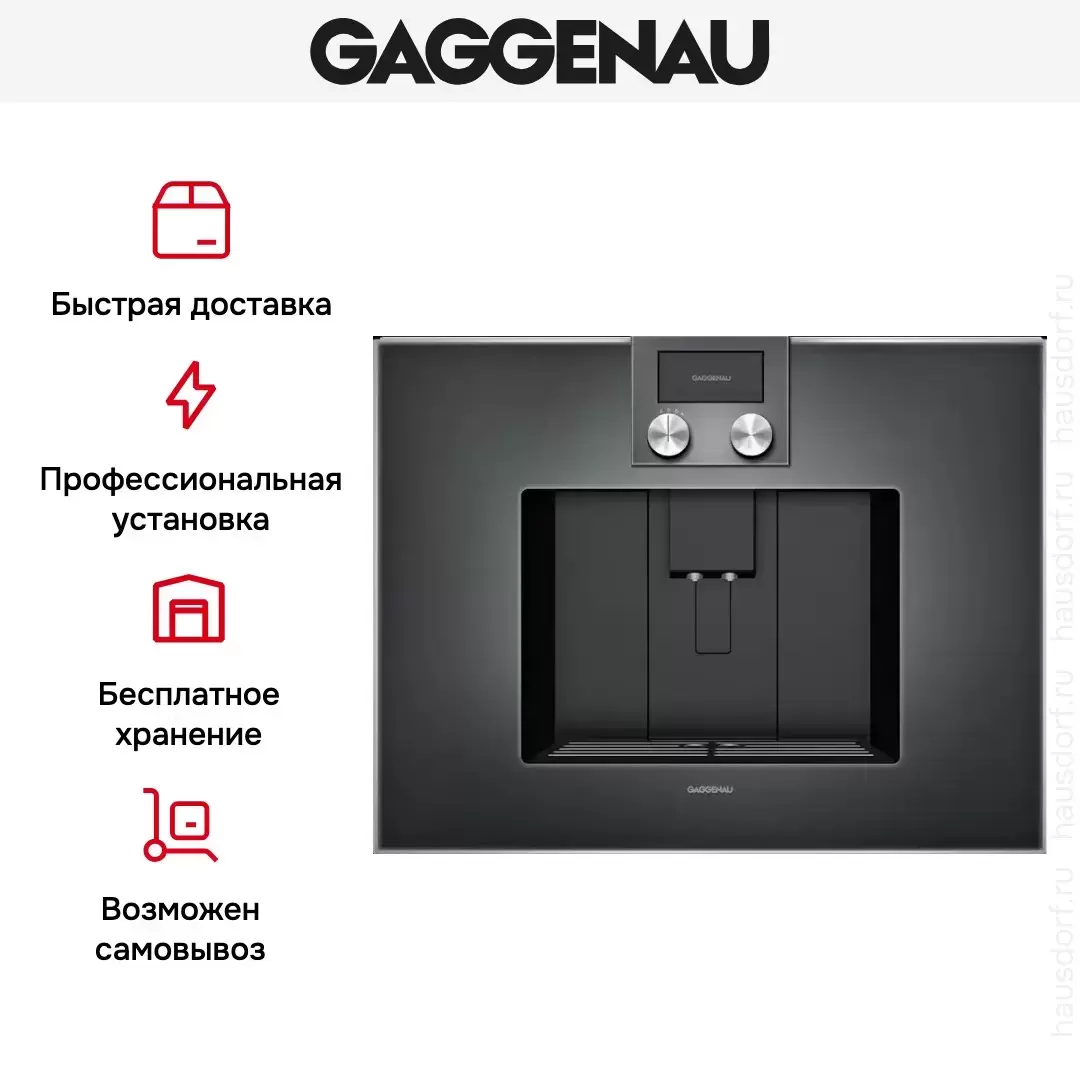 Кофемашина Gaggenau CM 450-102 имеет возможность встраивания, поэтому модель не занимает дополнительного пространства в помещении. Есть возможность дистанционного управления прибором через мобильное приложение Home Connect. Для этого вам необходимо подключиться к сети Wi-Fi или приобрести LAN-кабель. Система безопасности «защита от детей» блокирует всю панель управления, что позволяет избежать сбоя настроек и заданных параметров. При включении или выключении кофемашины срабатывает автоматическая система промывки. Помол и заваривание кофе при выборе двух порций одного типа напитка происходит отдельно для каждой из порций. Среди других дополнительных преимуществ: