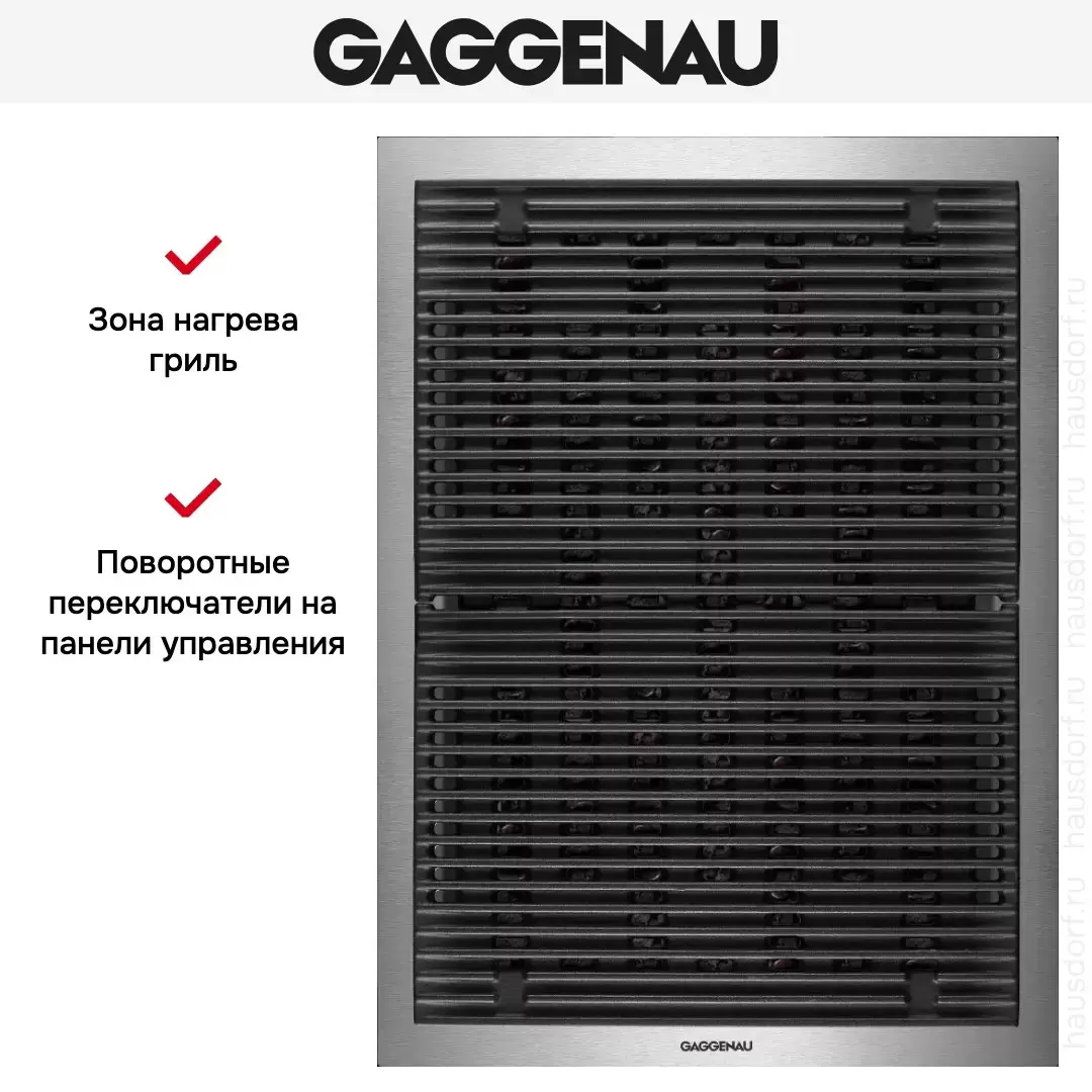 Гриль Гаггенау позволяет быстро добиться хрустящей корочки у мяса, рыбы, овощей, сохраняя сочную мякоть внутри блюда. Модульная структура данной панели помогает создать подходящую комбинацию на любой кухне. В качестве материала рабочей поверхности выступает нержавеющая сталь. Лаконичное цветовое решение будет уместно в любом интерьере.