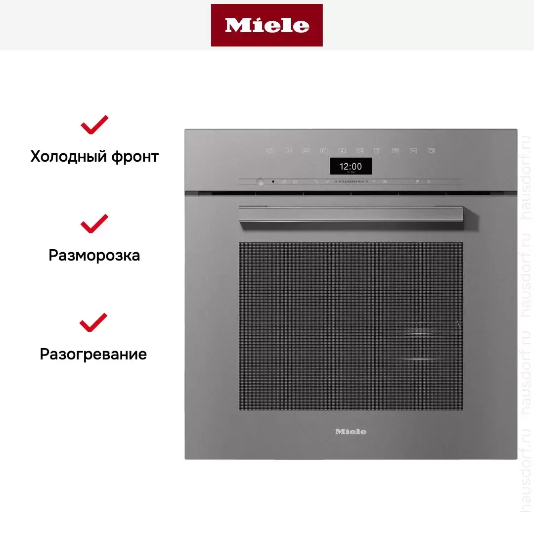 Miele DGC 7460 GRGR — комбинированный прибор для встраивания в колонну, который отличается большим объемом камеры. Модель в корпусе цвета «графитовый серый» позволяет готовить на пару, с помощью верхнего и нижнего жара, конвекции, гриля. Для удобства пользователя предусмотрены автоматические программы с индивидуальной настройкой процесса приготовления. До 20 программ можно сохранить в памяти. Безопасность использования обеспечивают холодный фронт и блокировка панели управления от детей.