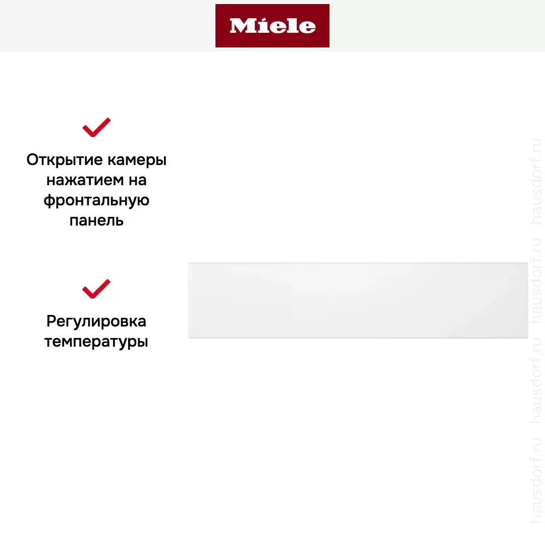 Встраиваемая модель высотой 29 см может быть установлена в колонну с другой домашней техникой — например, кофемашиной. Фасад цвета «бриллиантовый белый» не имеет выступающих элементов и легко чистится. Сенсорная панель управления позволяет выбрать режим работы: подогрев чашек, тарелок, поддержание температуры, приготовление пищи. Ящик с телескопическими направляющими далеко выдвигается и надежно фиксируется во время загрузки и разгрузки посуды. Таймер поможет запрограммировать время окончания работы.