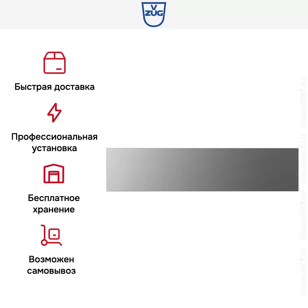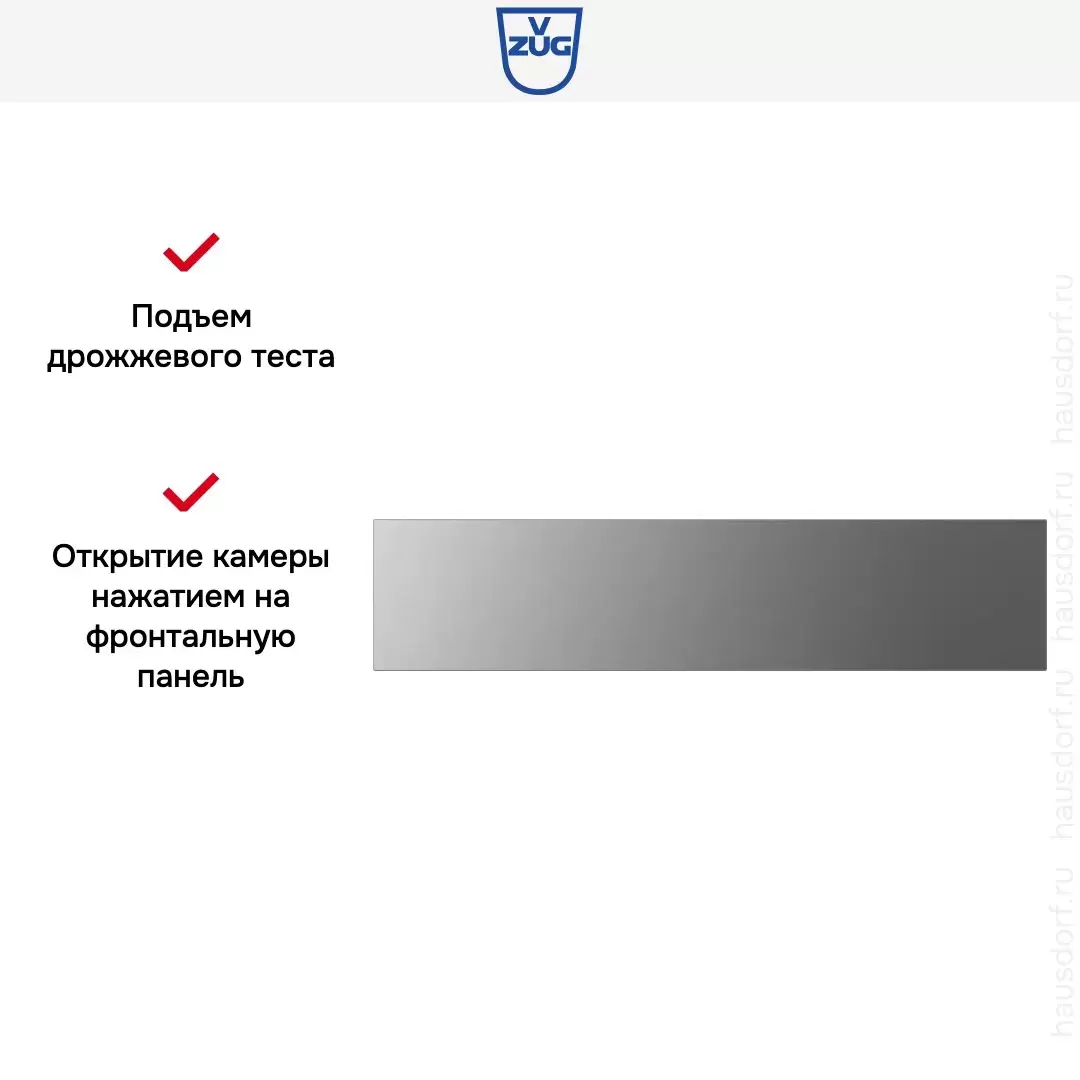 Модель V-ZUG WDEA6V1C платина предназначена для подогрева посуды (необходимо при подаче сложных блюд или подготовке торжества), а также обработки продуктов. Один из основных вариантов использования — прогрев тарелок, который предотвращает изменения вкуса или текстуры ресторанных порций. Также с помощью этого прибора можно поднять температуру на поверхности чашек, чтобы свежесваренный кофе полностью сохранил свои качества. Обратите внимание на функцию поддержания тепла: она пригодится, если вы готовите несколько блюд, которым требуется разное время. Чтобы ни одно из них не остыло, дожидаясь завершения всего процесса, поместите его в эту камеру.
