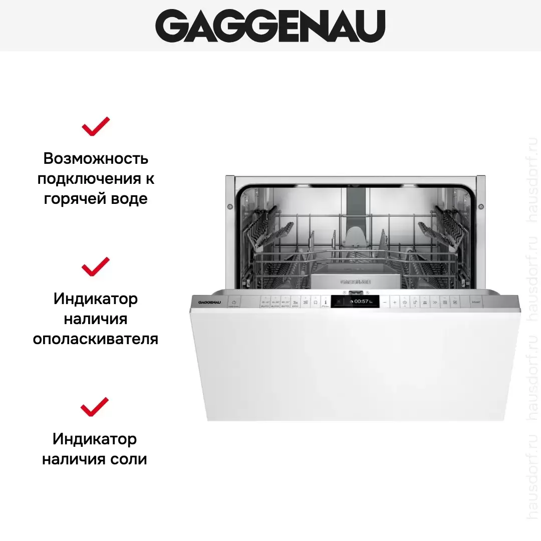 Встраиваемая модель Гаггенау отлично впишется в любой интерьер, главное — правильно выбрать место, чтобы подвести коммуникации. Устанавливается в нишу целиком, полностью закрывается декоративной панелью. Обратите внимание: в комплекте не идет фасад, его необходимо установить самостоятельно. Имеет стандартные размеры, поэтому может не поместиться на очень маленькой кухне. В камеру можно загрузить ограниченное число комплектов: 12 шт. Комплектом считается набор посуды на одного человека, который нужен для полноценного приема пищи: глубокая и плоская тарелки, тарелка для салата, блюдце под чашку, сама чашка, ложка и вилка.