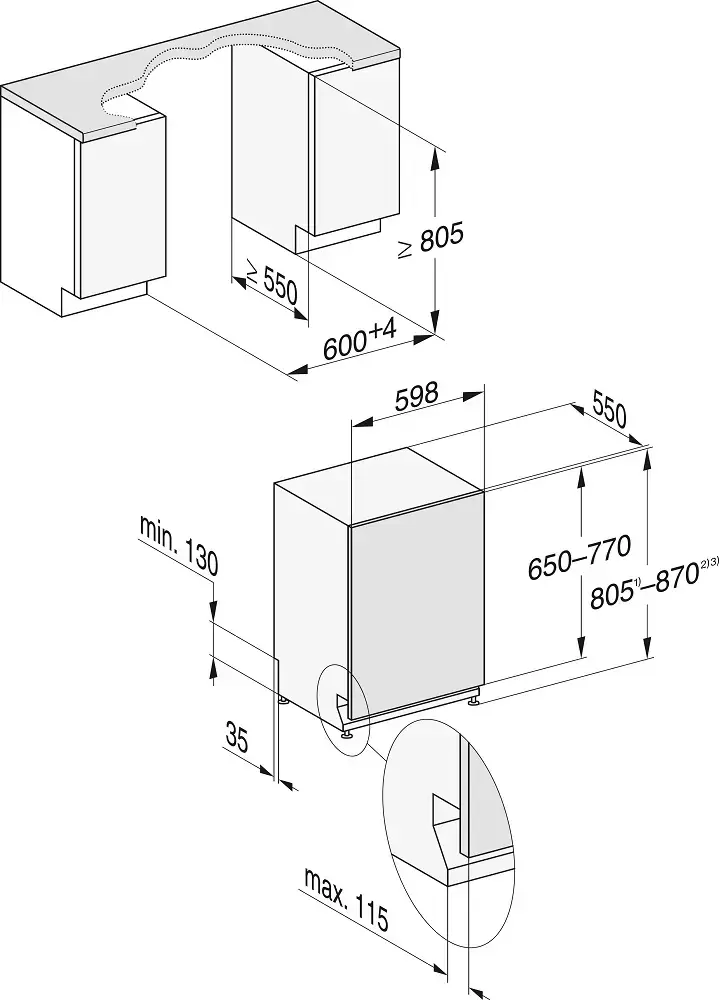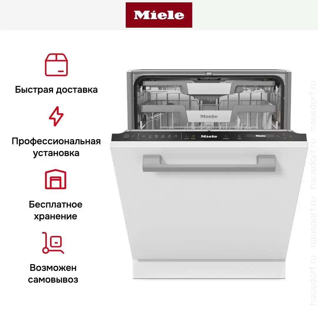 Встраиваемая модель Миле отлично впишется в любой интерьер, главное — правильно выбрать место, чтобы подвести коммуникации. Устанавливается в нишу целиком, полностью закрывается декоративной панелью. Обратите внимание: в комплекте не идет фасад, его необходимо установить самостоятельно. Имеет стандартные размеры, поэтому может не поместиться на очень маленькой кухне. В камеру можно загрузить ограниченное число комплектов: 14 шт. Комплектом считается набор посуды на одного человека, который нужен для полноценного приема пищи: глубокая и плоская тарелки, тарелка для салата, блюдце под чашку, сама чашка, ложка и вилка.