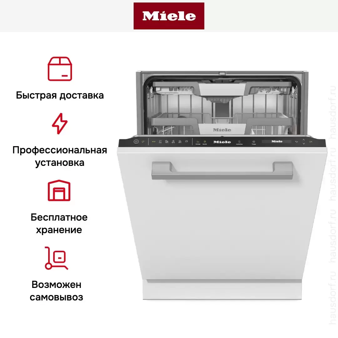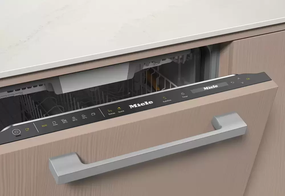 Встраиваемая модель Миле отлично впишется в любой интерьер, главное — правильно выбрать место, чтобы подвести коммуникации. Устанавливается в нишу целиком, полностью закрывается декоративной панелью. Обратите внимание: в комплекте не идет фасад, его необходимо установить самостоятельно. Имеет стандартные размеры, поэтому может не поместиться на очень маленькой кухне. В камеру можно загрузить ограниченное число комплектов: 14 шт. Комплектом считается набор посуды на одного человека, который нужен для полноценного приема пищи: глубокая и плоская тарелки, тарелка для салата, блюдце под чашку, сама чашка, ложка и вилка.