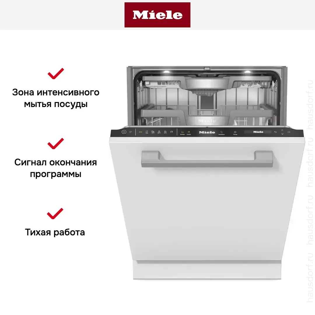 Встраиваемая модель Миле отлично впишется в любой интерьер, главное — правильно выбрать место, чтобы подвести коммуникации. Устанавливается в нишу целиком, полностью закрывается декоративной панелью. Обратите внимание: в комплекте не идет фасад, его необходимо установить самостоятельно. Имеет стандартные размеры, поэтому может не поместиться на очень маленькой кухне. В камеру можно загрузить ограниченное число комплектов: 14 шт. Комплектом считается набор посуды на одного человека, который нужен для полноценного приема пищи: глубокая и плоская тарелки, тарелка для салата, блюдце под чашку, сама чашка, ложка и вилка.