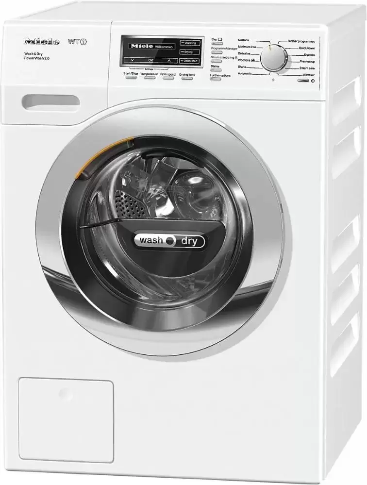 Новинка от известного бренда Miele — стирально-сушильный автомат в цвете белый лотос. Модель выполнена в элегантном дизайне — интуитивная наклонная панель управления, хромированная окантовка дверцы, эргономичный поворотный переключатель. Информативный дисплей отобразит текущие настройки. Запатентованный сотовый барабан позволяет качественно, но бережно выводить стойкие пятна даже с деликатных тканей.