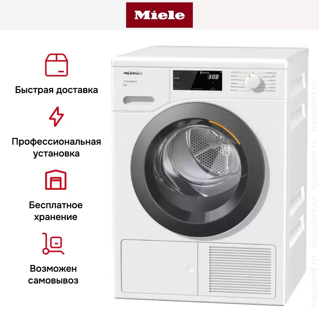 Miele TED265WP — отдельно стоящая полноразмерная сушильная машина высотой 85 см с весом загрузки до 8 кг белья. Модель в корпусе белого цвета с темно-серой дверцей можно разместить под столешницей, установить на стиральную машину или бок о бок с ней при помощи крепежного комплекта. Машина оснащена мощным компрессором Heat Pump, не требующим специального обслуживания. Бесщеточный мотор отличается высокой эффективностью и низким уровнем шума. Модель относится к классу энергопотребления А++. Сотовый барабан с реверсивным вращением и подсветкой изготовлен из нержавеющей стали.