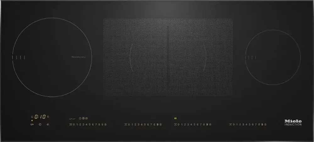 Модель шириной 92 см отличает необычное расположение зон нагрева в одну линию. В составе зон нагрева имеются конфорки высокой мощности PowerFlex, которые можно объединять в одну зону и использовать для запекания в форме большого размера. Функция «Сохранение тепла Plus» позволит поддержать температуру готовых блюд и бережно их разогреть. Сенсорное управление Smart Select поможет задать уровень мощности для каждой конфорки отдельно.