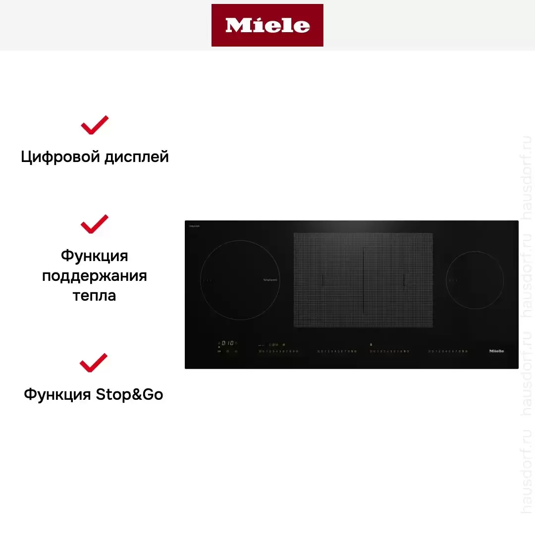 Широкая многофункциональная варочная панель Miele идеально подойдет большой кухне. Благодаря специальной технологии она синхронизируется с вытяжкой того же бренда — и та автоматически реагирует на изменение настроек приготовления.