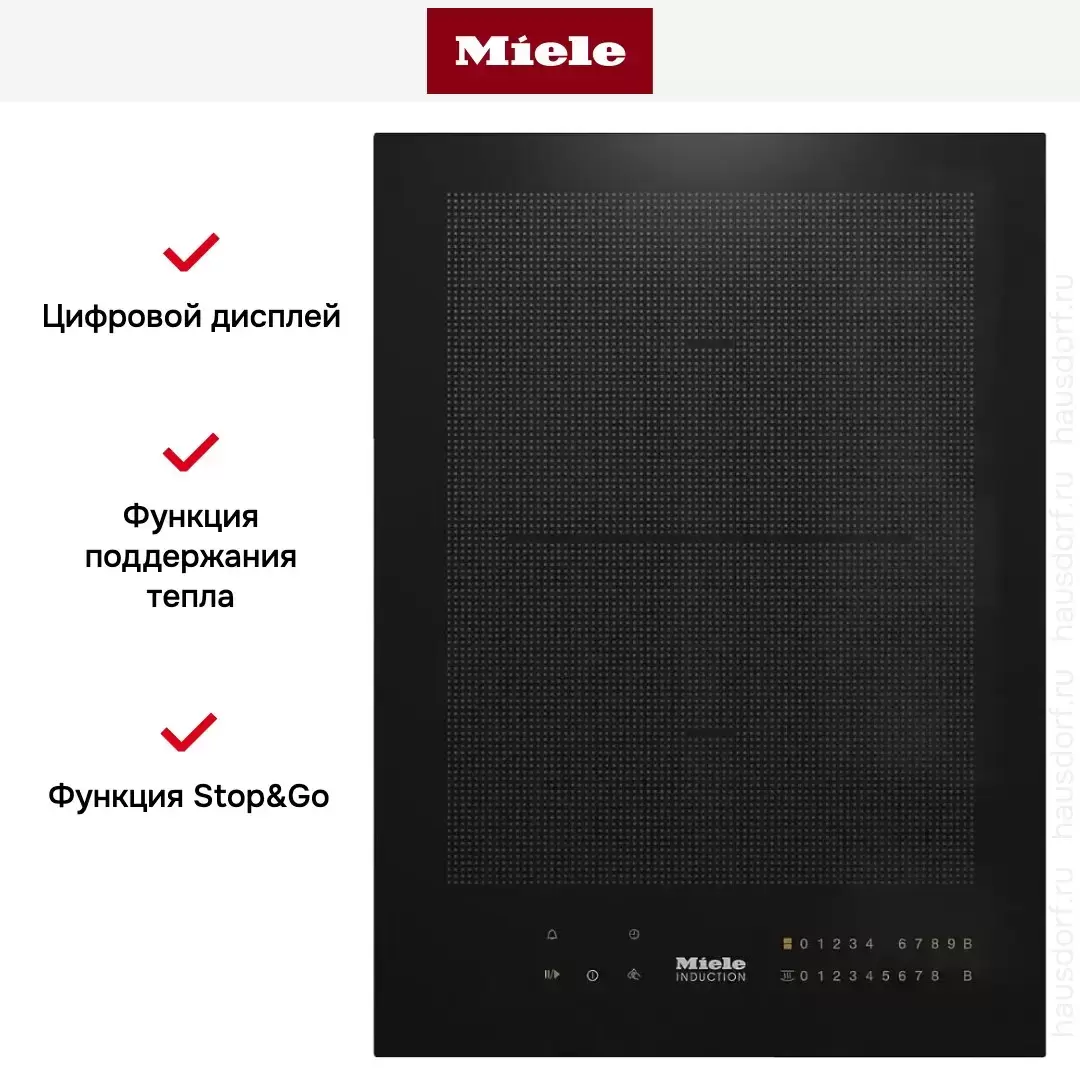 Элемент панели SmartLine Miele с индукционной зоной приготовления PowerFlex. Управление с помощью цифровой клавиатуры Smart Select позволяет легко настраивать мощность и время работы конфорки. Модель может устанавливаться как заподлицо, так и накладным способом.