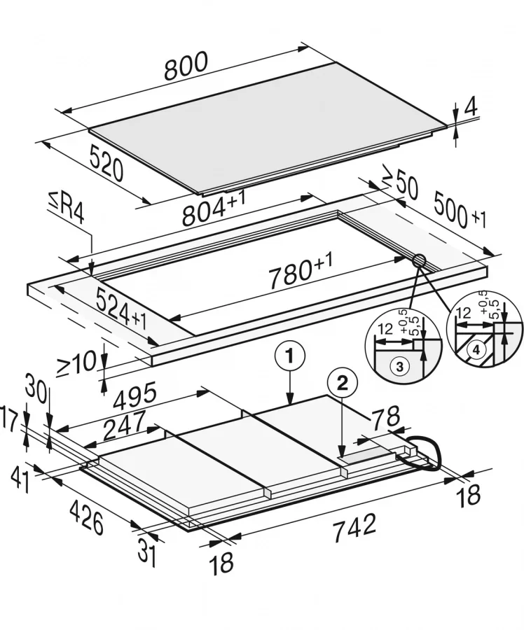 Модель шириной 80 см, изготовленная из черной стеклокерамики, оснащена цифровой клавиатуры Smart Select для каждой конфорки: для выбора ступени нагрева от 1 до 9 достаточно ее коснуться. Интеллектуальное распознавание наличия посуды позволяет не выбирать конфорку: умная техника сама определит, куда направить энергию. Посуду можно свободно перемещать по поверхности: о том, что нагрева не происходит, оповещает индикатор неправильного размещения посуды. Функция сохранения тепла поддерживает температуру готовых блюд.