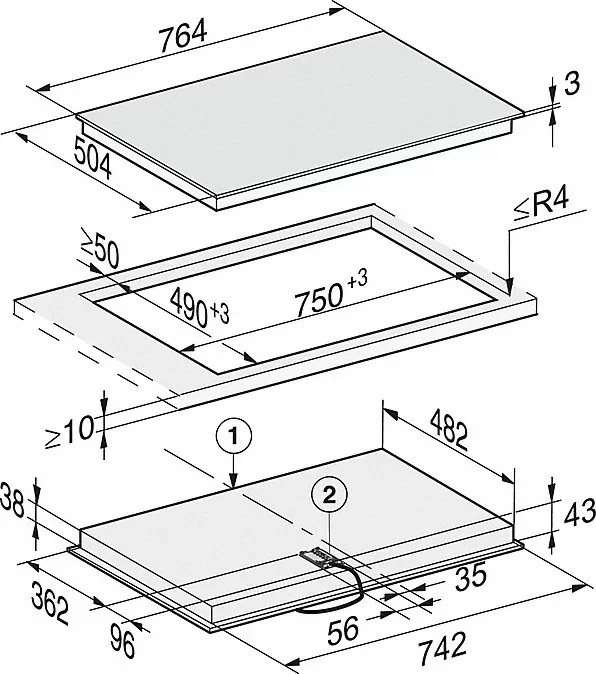 Панель шириной 76 см из черной стеклокерамики дополнена широкой рамкой из нержавеющей стали, исключающей попадание жидкость на столешницу. Стеклокерамика очень проста в очистке, для большего удобства к устройству прилагается специальный скребок. Сенсорная панель управления EasySelect позволяет выбрать зону и интенсивность нагрева одним прикосновением. Имеется 9 ступеней мощности для любого способа приготовления — от растапливания масла до закипания и интенсивного жарения. Если прибор будет случайно выключен, все настройки могут быть восстановлены в течение 10 секунд.