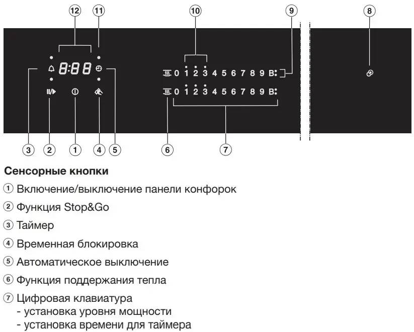 В вашем распоряжении разные степени нагрева — каждая из них может понадобиться в зависимости от рецепта, а также от цели: приготовления, разогрева уже готовых блюд и т.д. Регулировка 9-ступенчатая. Благодаря специальной опции Power можно не устанавливать максимальную температуру, так как потом придется вовремя ее менять вручную. В этом режиме мощность сама подскакивает до предельных значений, но на короткое время, а затем также автоматически возвращается к прежним настройкам. Вы можете поставить нагрев на паузу тоже на небольшой промежуток времени, если надо отвлечься от готовки, но нужно помнить, что этот перерыв быстро закончится. Варочная панель распознает, что на нее поставили посуду, и не путает ее с другими вещами — например, салфеткой для уборки, не реагирует на прикосновения руки к конфорке. Благодаря этому вы можете быть уверены, что посторонние предметы не будут повреждены нагревом. Функция поддержания тепла дает возможность сохранить свежесть приготовленных блюд, даже если до ужина еще далеко.