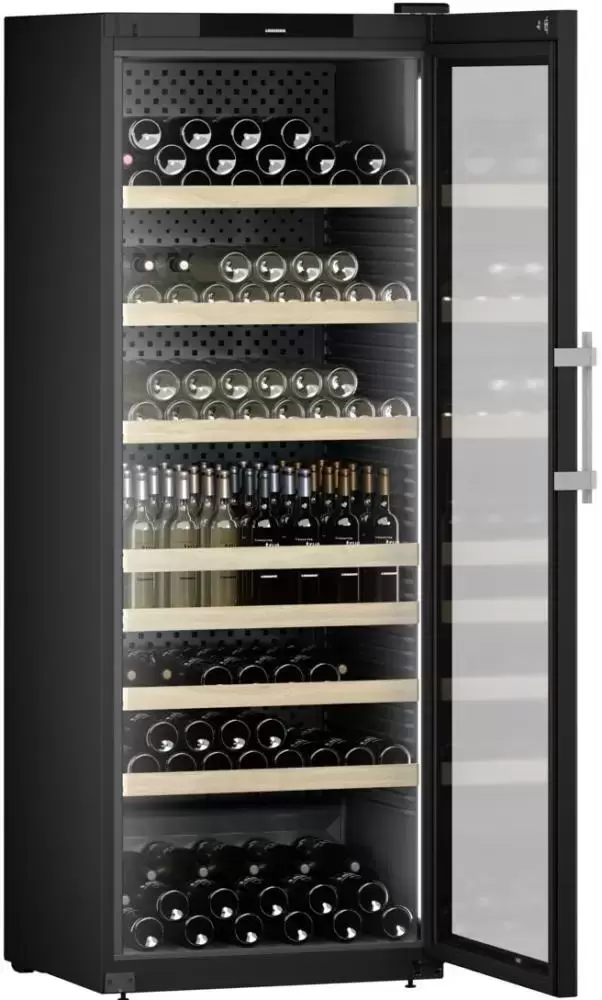 Винный холодильник Liebherr WFbli 7741 имеет одну температурную зону, в которой можно разместить бутылки и единовременно выставить только одну комбинацию настроек. Он устанавливается отдельно, что удобно, если у вас есть специальное помещение — кладовая, погреб и т.д. Количество бутылок, которое можно разместить с учетом полной комплектации и из расчета объема бутылки 0,75 л, — 284 шт.