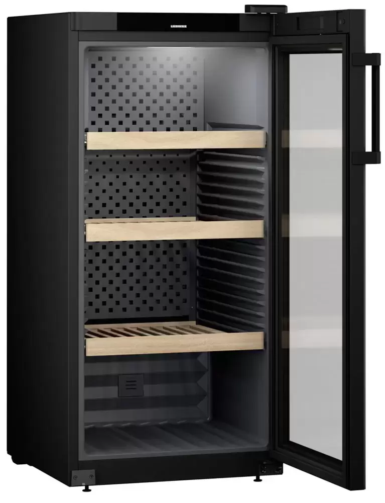 Винный холодильник Liebherr WPbl 4201 имеет одну температурную зону, в которой можно разместить бутылки и единовременно выставить только одну комбинацию настроек. Он устанавливается отдельно, что удобно, если у вас есть специальное помещение — кладовая, погреб и т.д. Количество бутылок, которое можно разместить с учетом полной комплектации и из расчета объема бутылки 0,75 л, — 141 шт.