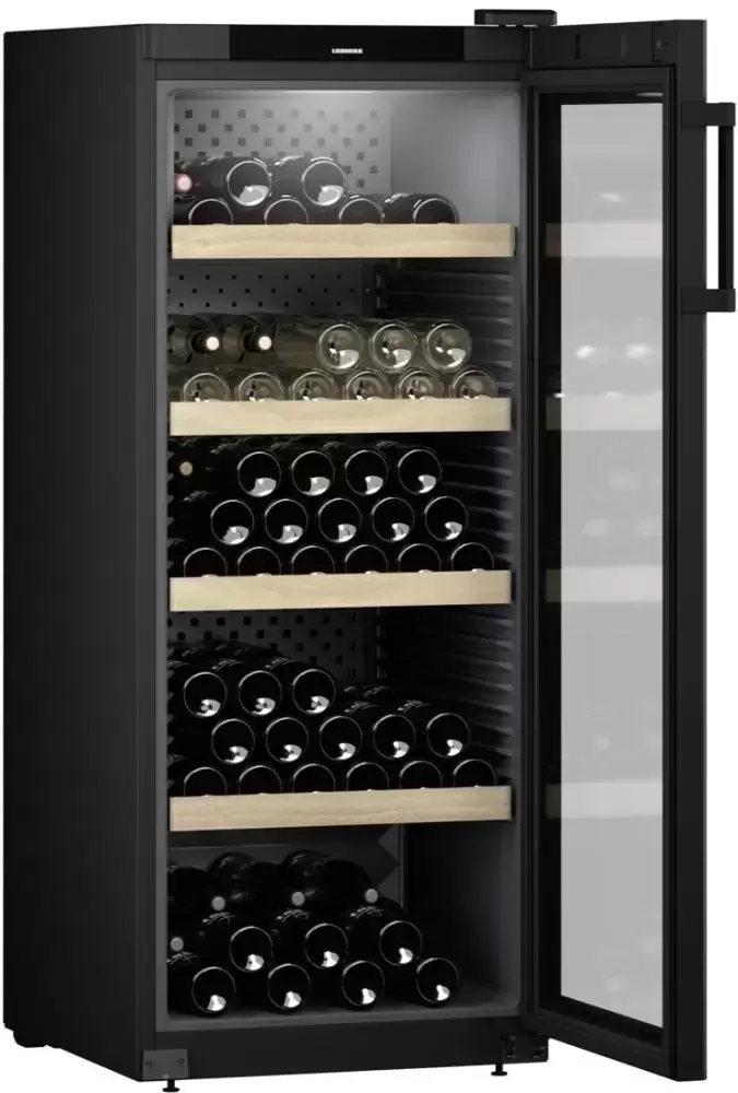 Винный холодильник Liebherr WPbl 4601 имеет одну температурную зону, в которой можно разместить бутылки и единовременно выставить только одну комбинацию настроек. Он устанавливается отдельно, что удобно, если у вас есть специальное помещение — кладовая, погреб и т.д. Количество бутылок, которое можно разместить с учетом полной комплектации и из расчета объема бутылки 0,75 л, — 166 шт.