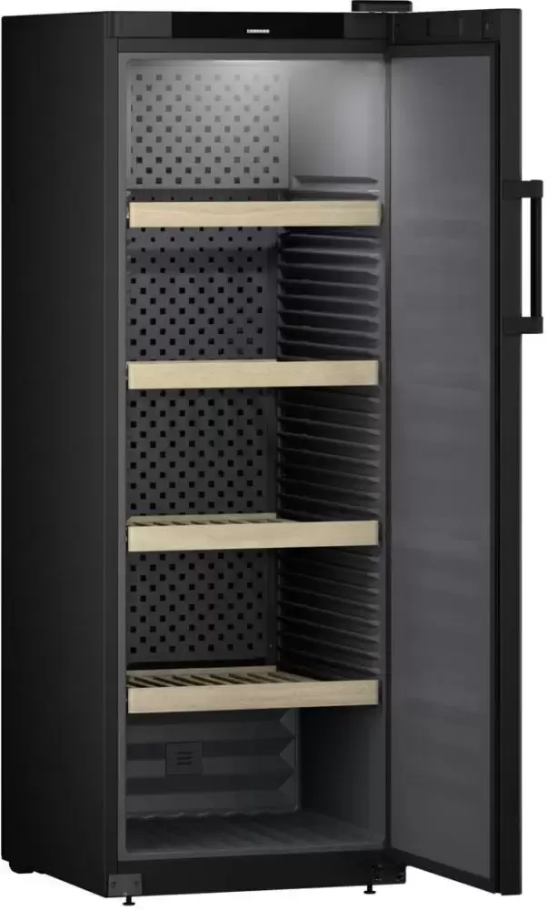 Винный холодильник Liebherr WSbl 5001 имеет одну температурную зону, в которой можно разместить бутылки и единовременно выставить только одну комбинацию настроек. Он устанавливается отдельно, что удобно, если у вас есть специальное помещение — кладовая, погреб и т.д. Количество бутылок, которое можно разместить с учетом полной комплектации и из расчета объема бутылки 0,75 л, — 196 шт.
