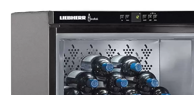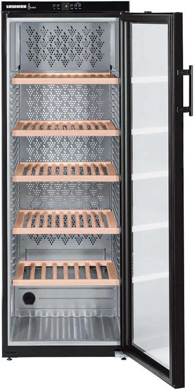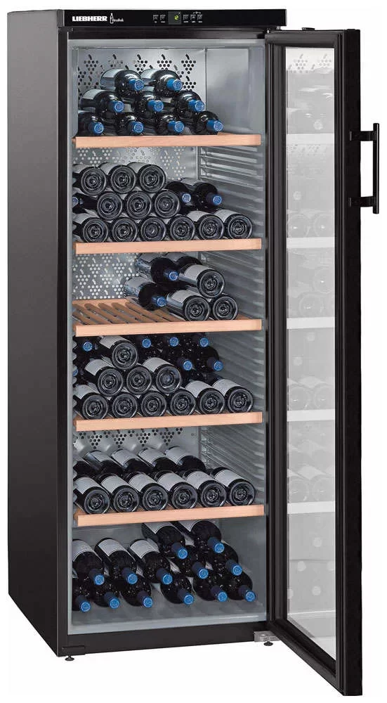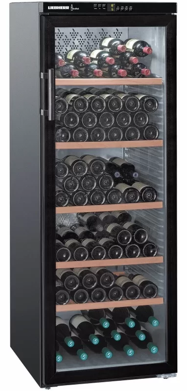 Климатический винный шкаф Liebherr WTb 4212 Vinothek имеет три температурные зоны и позволяет хранить одновременно несколько разных сортов вин. Отдельно стоящее устройство высотой 165 см позволяет разместить до 200 бутылок по 0,75 литра каждая. Модель из современной дизайн-серии HardLine выпускается в стальном корпусе черного цвета. Для охлаждения применяется экологически безопасный хладагент R600a, не разрушающий озоновый слой. Класс энергоэффективности А свидетельствует о небольшом потреблении энергии. Открытая панель управления с LED-дисплеем MagicEye в верхней части фасада поможет точно задать параметры работы. От ультрафиолетового излучения коллекционные вина предохраняет стеклопакет с защитным покрытием в дверце. Для освещения камеры используются люминесцентные лампы с функцией продолжительного включения. Шесть полок изготовлены из натурального дерева. Для поддержания оптимального уровня влажности в камере предусмотрены емкости с водой. Чистота воздуха и отсутствие посторонних запахов поддерживаются благодаря фильтру из активированного угля.