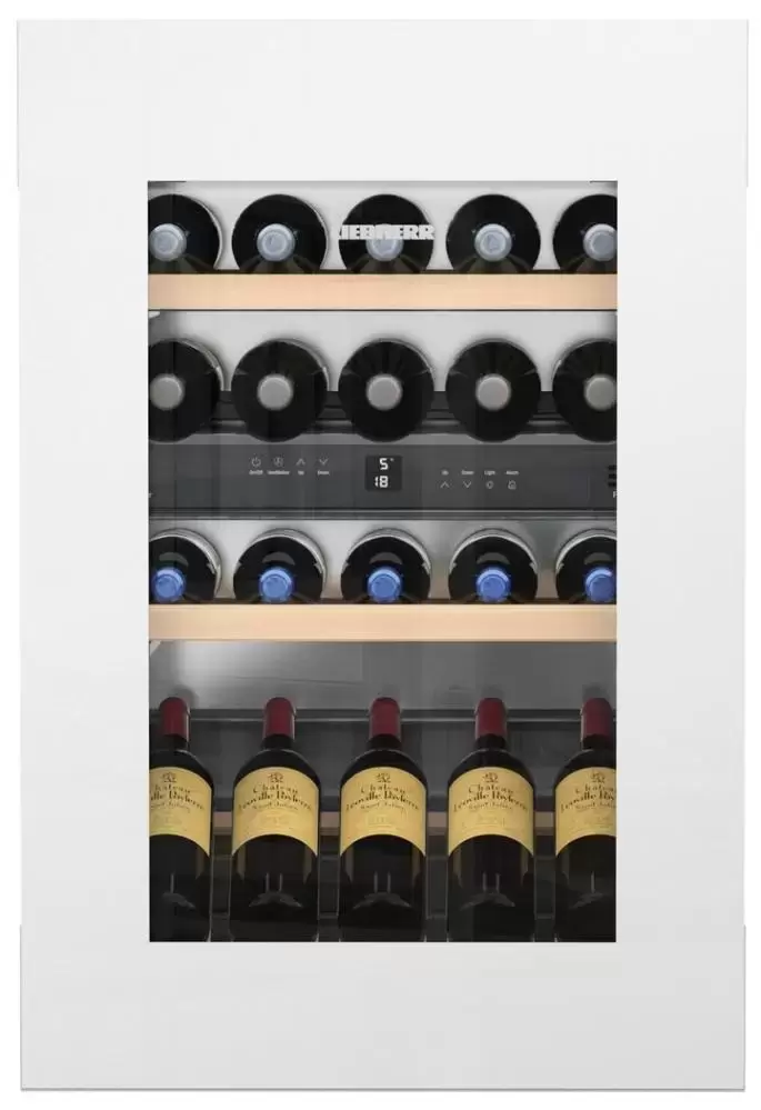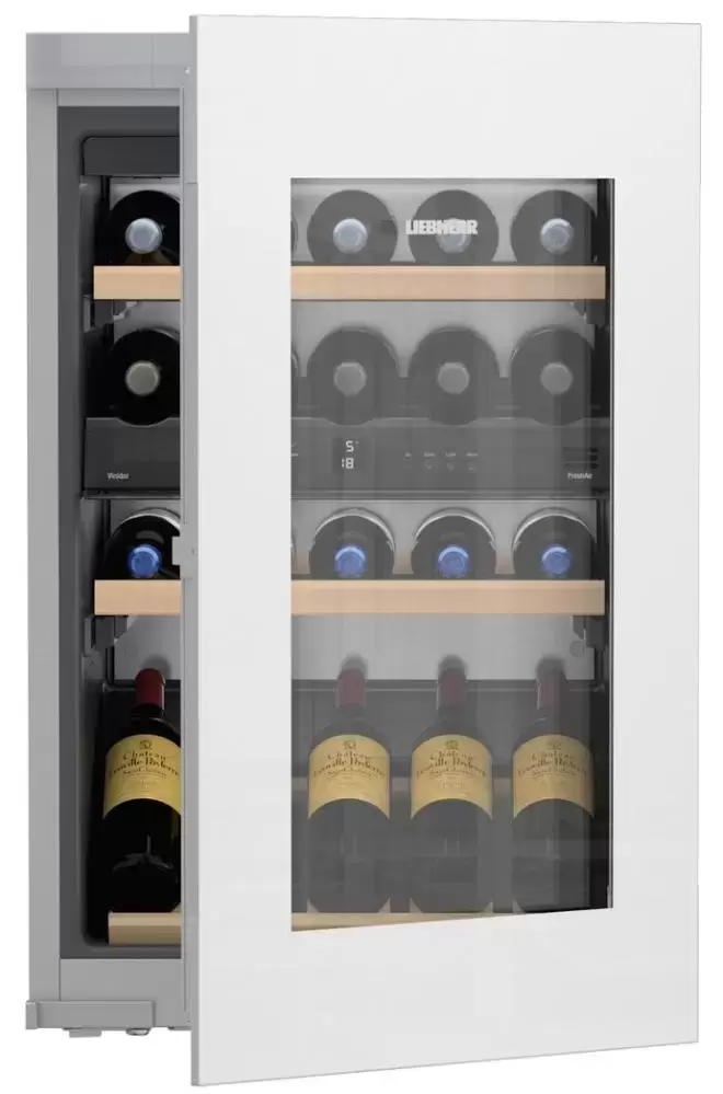 Винный шкаф Liebherr EWTgw 1683 Vinidor — двухтемпературная модель, рассчитанная на одновременное хранение до 33 бутылок типа «Бордо». Изделие интегрируется в специальную нишу, поэтому прибор гармонично впишется в любое интерьерное решение. Техника оснащена удобной и понятной сенсорной панелью управления с ЖК-дисплеем, благодаря чему параметры охлаждения регулируются в одно касание. Для наилучшей адаптации к условиям помещения дверцу устройства можно перенавесить, изменив тем самым сторону ее открывания. Элегантный шкаф высотой 90 см выделяется фасадом белого цвета, который располагается вровень с полом. Как и других шкафах известной серии Vinidor, температуру в нем можно отрегулировать в диапазоне от +5°C до +20°C. Климатический класс SN позволяет использовать этот прибор при температуре окружающей среды от +10°С до +32°С.