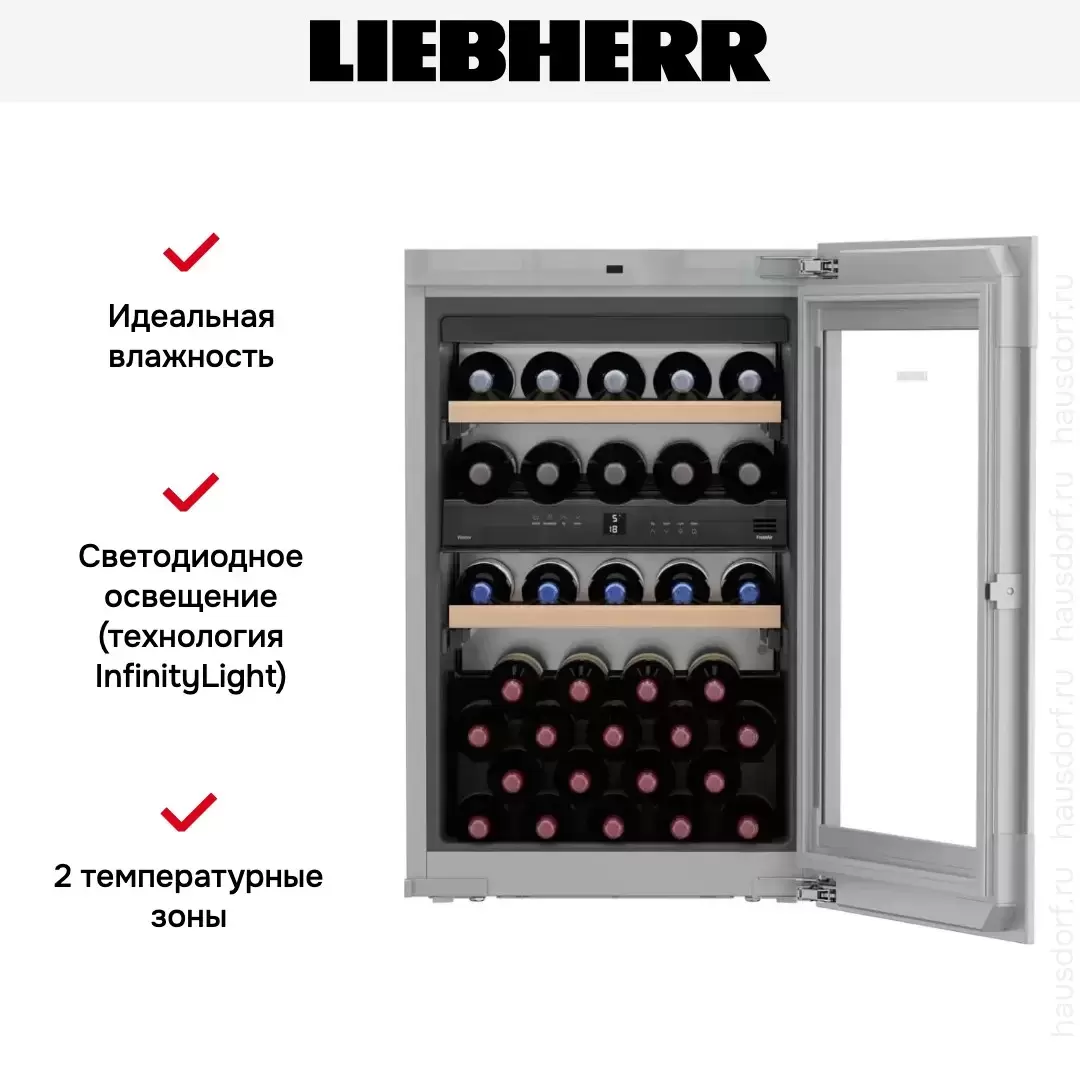 Модель отличается низким энергопотреблением класса A — годовой расход энергии составляет всего 145 кВтч/год, что делает устройство экономичным вариантом. Два независимых контура охлаждения позволяют регулировать температуру в каждой из зон с высокой точностью, что расширяет возможности для хранения. Панель управления может быть заблокирована от детей, что повышает уровень безопасности. Для обзора содержимого применяется продолжительно включаемая светодиодная подсветка с функцией плавного изменения яркости. Вино размещается на четырех полках из дерева, две полки можно без труда выкатить на телескопических шинах. Демонстрационная полка служит для размещения начатых бутылок или для презентации коллекционных вин. От посторонних запахов вина защищает фильтр из активированного угля с возможностью замены, а от ультрафиолета — стеклопакет в дверце. Для бережного хранения служит открываемая одним нажатием дверца TipOpen с доводчиком SoftSystem. В комплектации представлена подробная инструкция по эксплуатации, с которой необходимо ознакомиться перед установкой и подключением. Тихая работа не создает дискомфорт — уровень шума не превышает 36 дБ. Индикация неисправностей позволяет контролировать устройство. Среди преимуществ винного шкафа Либхер EWTgw 1683 Vinidor: функция защиты от детей, перенавешиваемые дверные петли, сенсорное управление.