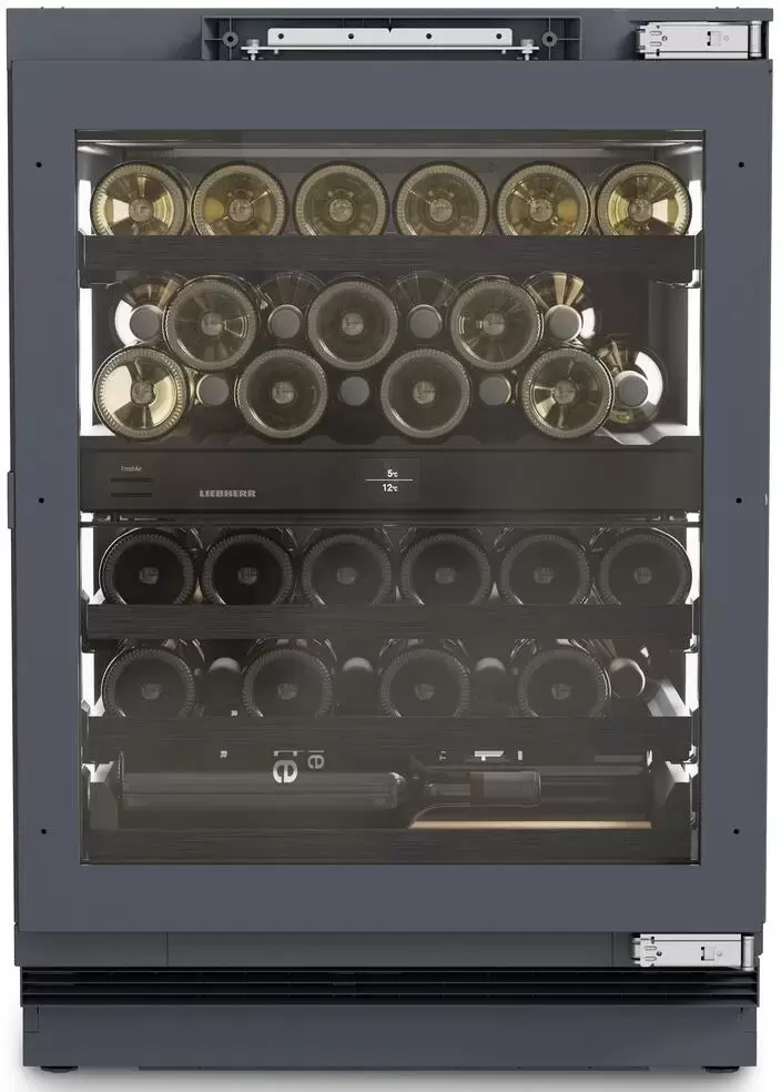 Винный холодильник Liebherr UWpri 3782 имеет две температурные зоны, в которых одновременно можно хранить разные сорта алкоголя и выставлять разные сочетания настроек. Он встраивается в нишу, что удобно, если у вас ограничен метраж помещения. Благодаря компактным размерам данная модель — отличный выбор для офиса, гостиничного номера. Количество бутылок, которое можно разместить с учетом полной комплектации и из расчета объема бутылки 0,75 л, — 38 шт.