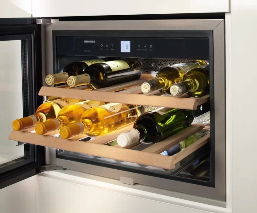 Климатический винный шкаф Liebherr WKEes 553 отличается своими небольшими габаритами, превосходный вариант для гостиной или кабинета. Две полки на телескопических направляющих способны вместить 18 бутылок (0,75 л) вина.