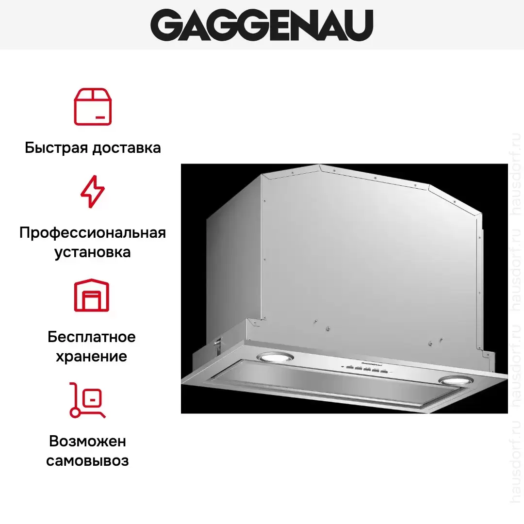 Встраиваемая вытяжка — выбор тех, кто хочет максимально задекорировать технику, или владельцев маленькой кухни. Тип встраивания: в шкаф. Обратите внимание на цветовые сочетания модели Gaggenau AC 200-160, чтобы органично вписать ее в свою квартиру. Оттенок корпуса: нержавеющая сталь/стекло. Благодаря лампочкам, которые расположены на нем, можно освещать плиту и столешницу рядом, чтобы готовить было еще проще и приятнее.