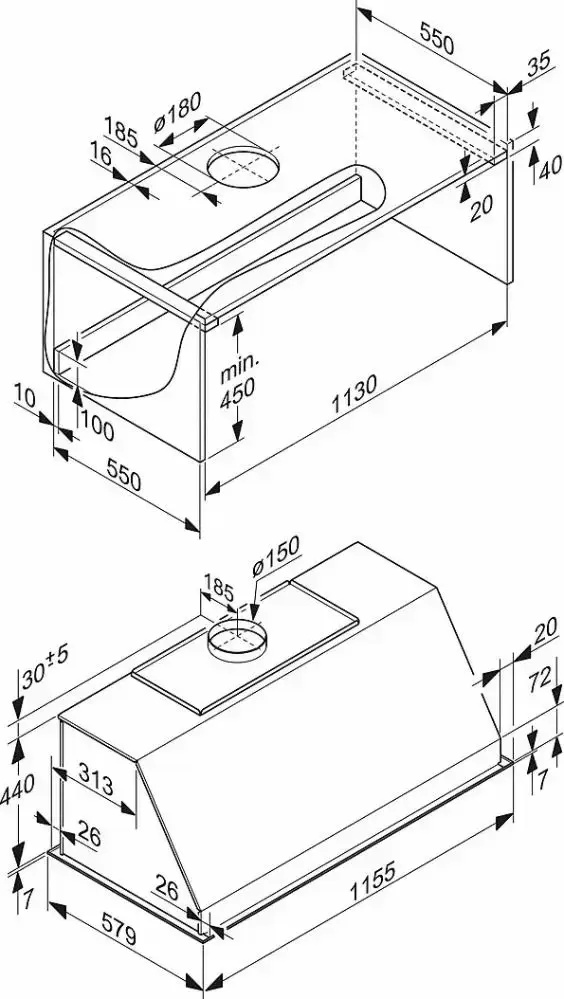 Вытяжка предназначена для работы с комбинированной плитой из серии Range Cooker. Модуль устанавливается над варочной поверхностью — на расстоянии 65 см, встраивается в шкаф. Благодаря четырем жироулавливающим фильтрам из нержавеющей стали и вентилятору двойного действия загрязнения из воздуха быстро и эффективно засасываются внутрь и оседают там. Антивозвратный клапан предотвращает обратное попадание воздуха в комнату. Фильтры и специальный поддон для жира можно мыть в посудомоечной машине, что облегчает уход за прибором. Угольный фильтр необходимо приобретать отдельно, чтобы активировать режим рециркуляции.