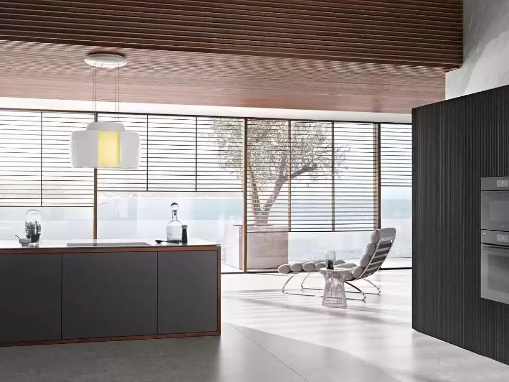 Подвесная вытяжка Miele работает только в режиме рециркуляции, управляется с помощью приложения на телефоне и кнопок включения/выключения за фильтром.