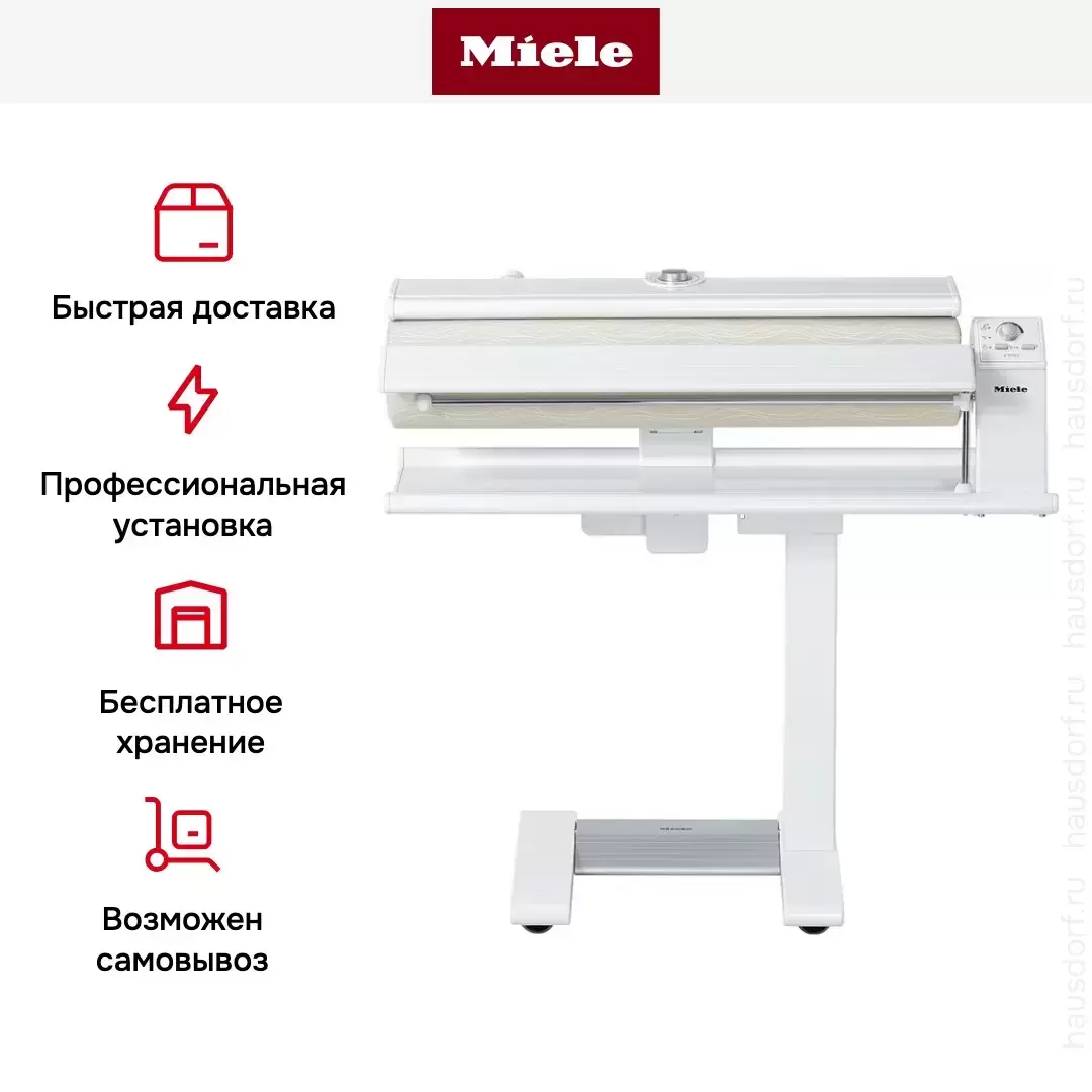 Преимущество гладильной машины Miele B995D в возможности компактного хранения. Машина оснащена наклонной панелью для удобства подачи белья, стол для белья под гладильным валом. Наличие фильтра позволяет использовать обычную водопроводную воду. Гладильный вал вращается с пятью различными скоростями.