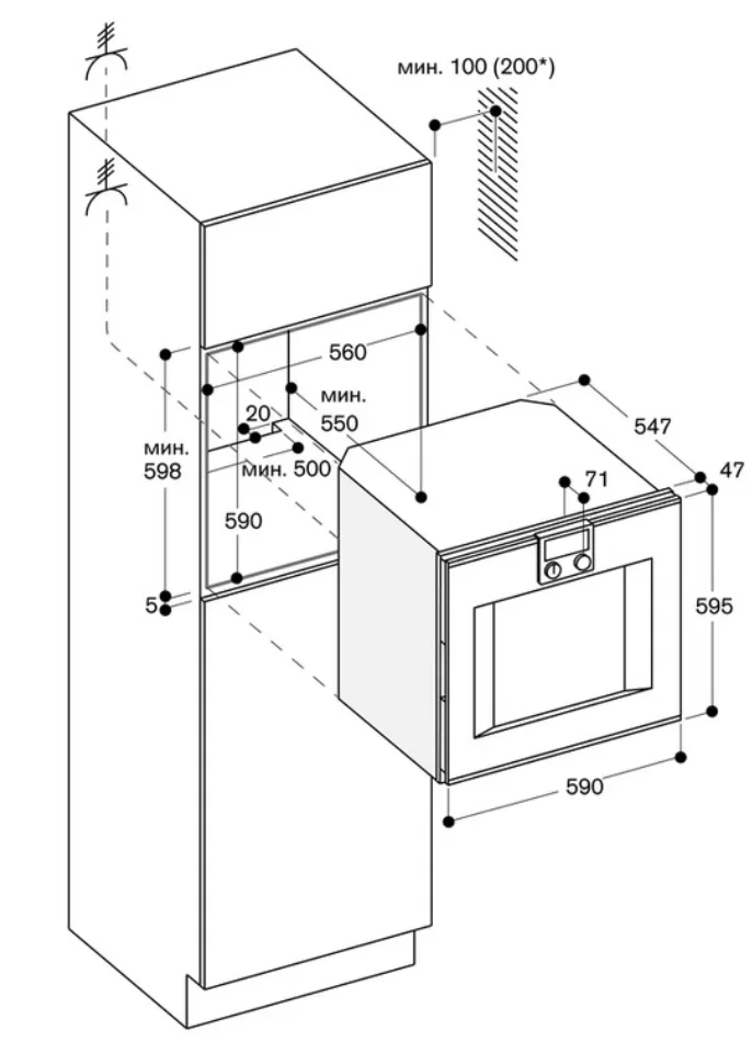 - Размеры ниши для встраивания, ВхШхГ (см)