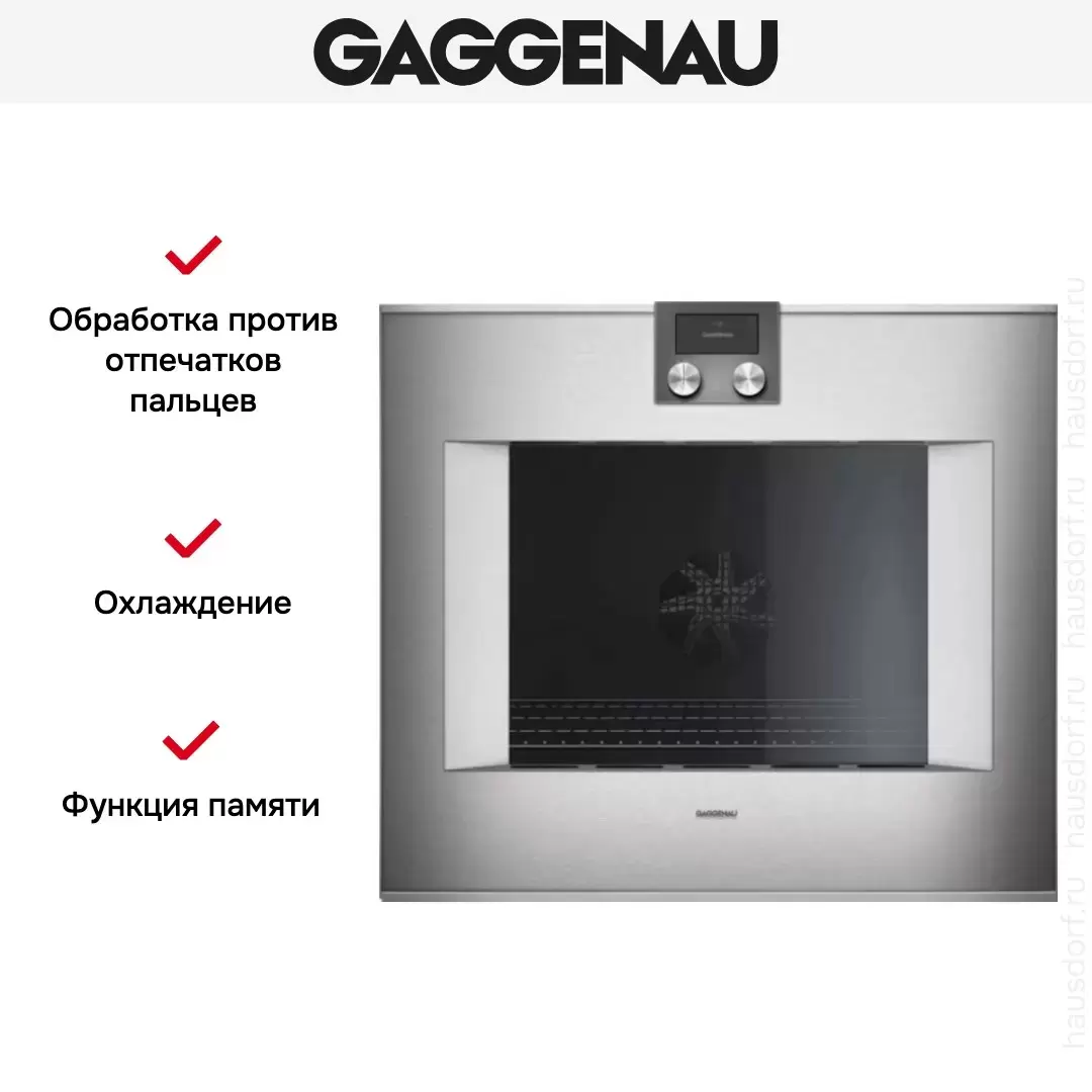 Количество режимов работы в духовом шкафу Гаггенау: 17. В число доступных программ входят: классический нагрев, верхний нагрев, нижний нагрев, конвекция, брожение, гриль для создания хрустящей корочки, пицца, и другие. Помимо основных программ воспользуйтесь специальными возможностями этого прибора: размораживанием продуктов, чтобы сократить время на подготовку; опцией автоматического поднятия теста; быстрым разогревом для ускорения работы; поддержанием температуры в камере на определенном уровне, чтобы блюда не остывали; и другими. Тип гриля в этой модели — электрический.