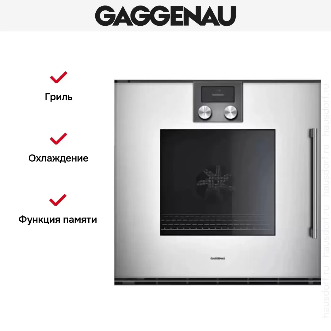 Количество режимов работы в духовом шкафу Гаггенау: 9. В число доступных программ входят: классический нагрев, верхний нагрев, нижний нагрев, конвекция, гриль для создания хрустящей корочки, пицца, и другие. Помимо основных программ воспользуйтесь специальными возможностями этого прибора: быстрым разогревом для ускорения работы; поддержанием температуры в камере на определенном уровне, чтобы блюда не остывали; и другими. Тип гриля в этой модели — электрический.