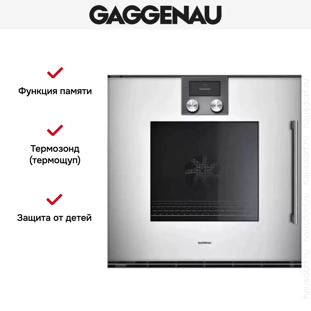 Количество режимов работы в духовом шкафу Гаггенау: 13. В число доступных программ входят: классический нагрев, верхний нагрев, нижний нагрев, конвекция, брожение, гриль для создания хрустящей корочки, пицца, и другие. Помимо основных программ воспользуйтесь специальными возможностями этого прибора: размораживанием продуктов, чтобы сократить время на подготовку; опцией автоматического поднятия теста; быстрым разогревом для ускорения работы; поддержанием температуры в камере на определенном уровне, чтобы блюда не остывали; и другими. Тип гриля в этой модели — электрический.