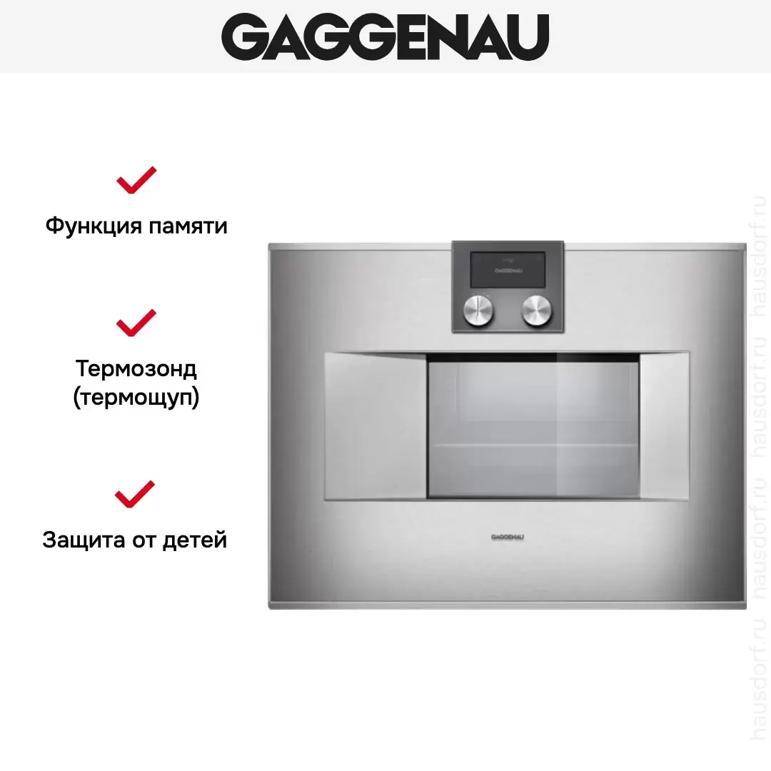 Количество режимов работы в духовом шкафу Гаггенау: 13. В число доступных программ входят: конвекция, дополнительное использование пара, гриль для создания хрустящей корочки, сушка для овощей и фруктов, медленное приготовление при низкой температуре, и другие. Помимо основных программ воспользуйтесь специальными возможностями этого прибора: размораживанием продуктов, чтобы сократить время на подготовку; быстрым разогревом для ускорения работы; поддержанием температуры в камере на определенном уровне, чтобы блюда не остывали; и другими. Тип гриля в этой модели — электрический.