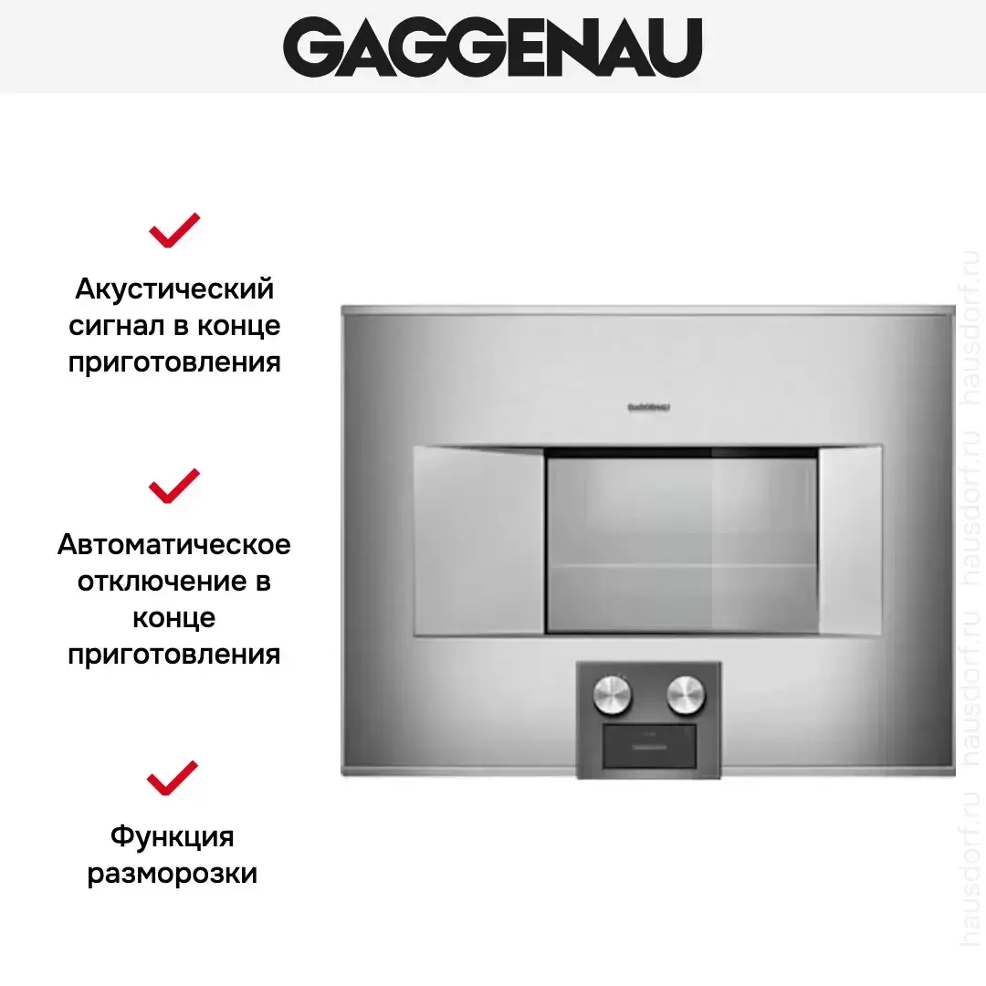 Количество режимов работы в духовом шкафу Гаггенау: 13. В число доступных программ входят: конвекция, дополнительное использование пара, гриль для создания хрустящей корочки, сушка для овощей и фруктов, медленное приготовление при низкой температуре, и другие. Помимо основных программ воспользуйтесь специальными возможностями этого прибора: размораживанием продуктов, чтобы сократить время на подготовку; быстрым разогревом для ускорения работы; поддержанием температуры в камере на определенном уровне, чтобы блюда не остывали; и другими. Тип гриля в этой модели — электрический.
